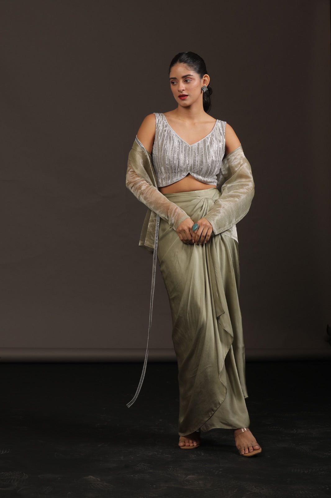 Featuring Work: Intricate silver cutdana embellishment and refined lace detailing