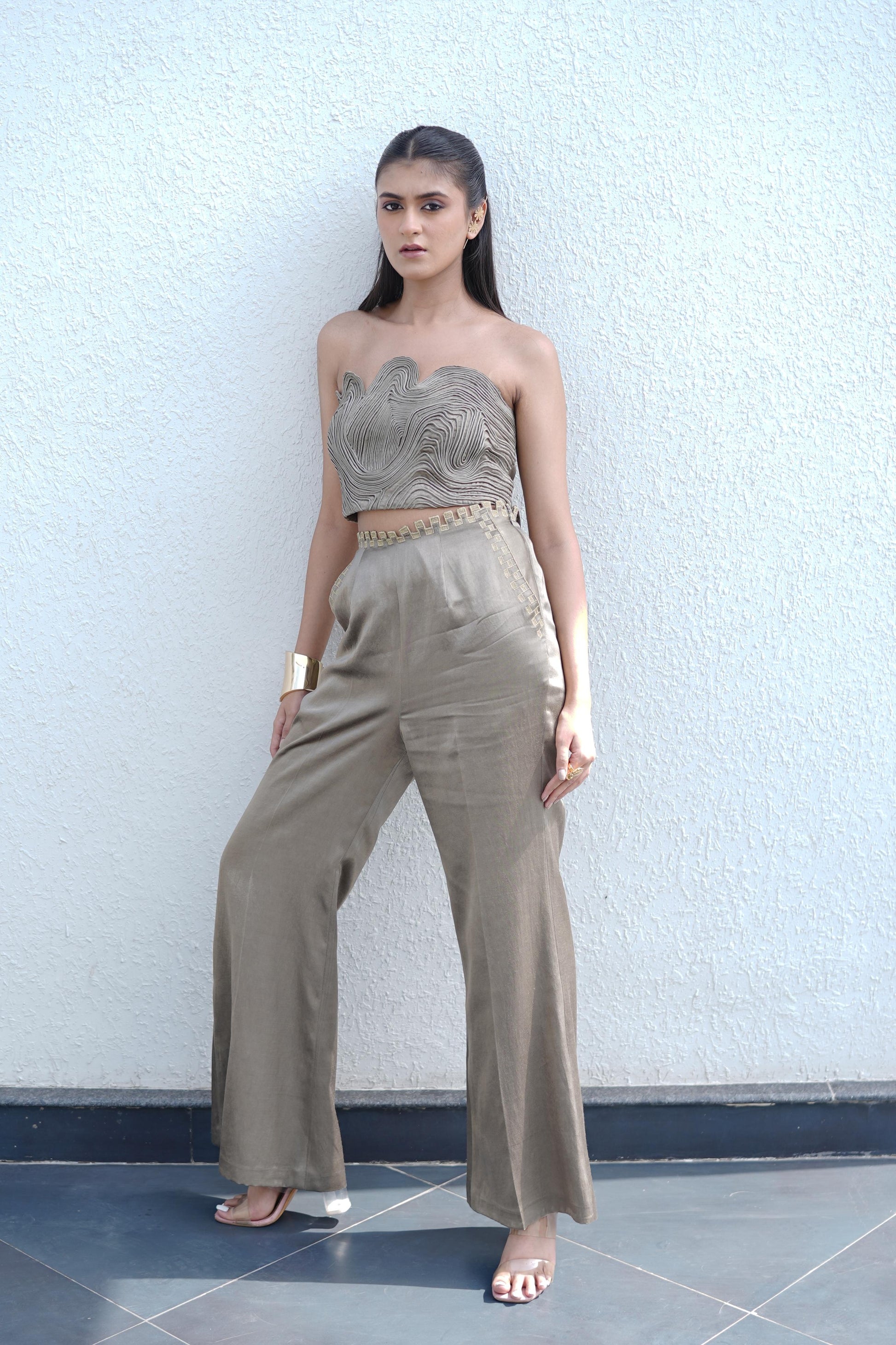 Featuring Work: Off shoulder crop top showcasing dori wave-like detailing