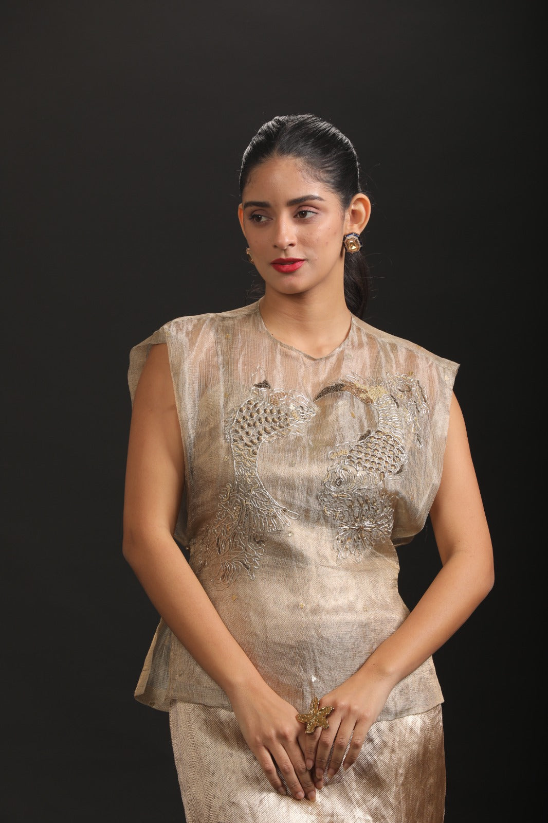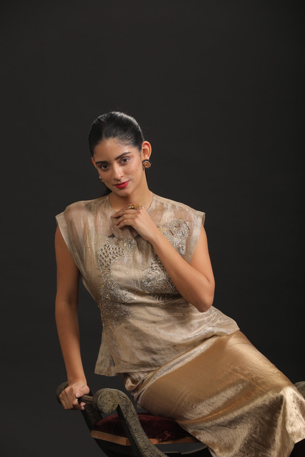 Featuring Work: Straight-fit silhouette adorned with a blend of delicate hand and machine embroidery, adding texture and refined detailing
